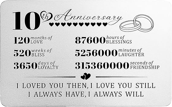 What To Buy Husband For 10 Year Anniversary - 10th Anniversary Gift Ideas For Husband 10 Year Anniversary Gift For Wife Tin Anniversary Gifts Tenth Anniversary Ten Year Wedding Present Wantitall : Printed on tin and customized with names and a date, this special gift is a reminder of.. It should be something that reflects how well you know him. Every milestone celebrated brings happiness and smile on people's faces but with an ideal virtual gift that paints a beautiful and memorable picture on the canvas of people's mind. The centerpiece is a real dime, celebrating ten years of wedded bliss and reminding him that you aren't the fish who got away. Here are some beautiful 1 year anniversary gifts that he will love. Find thoughtful anniversary gift ideas for husband such as moon meteorite, wifey & hubby personalized 30x60 beach towel, merlot infused coffee.